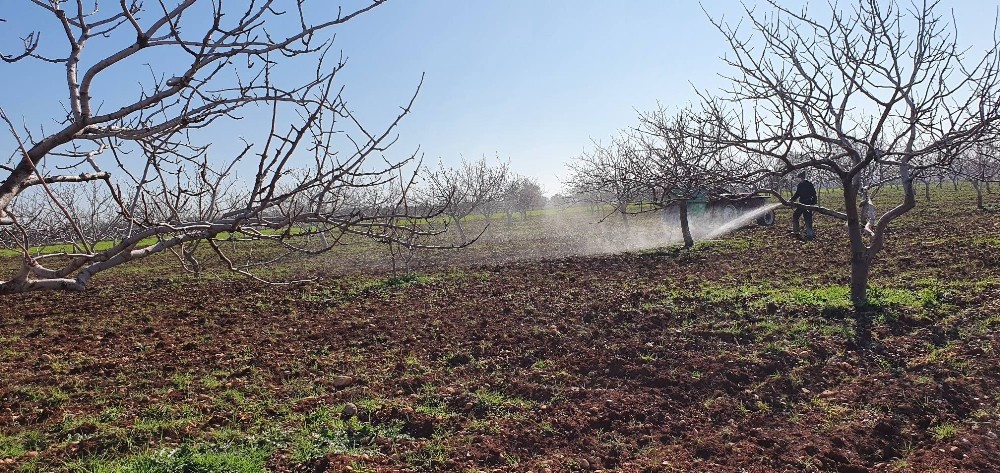Kilis’te. Fıstık ağaçları kabuklu bit, dal güvesi, karagöz kurduna karşı ilaçlanmaya başladı.