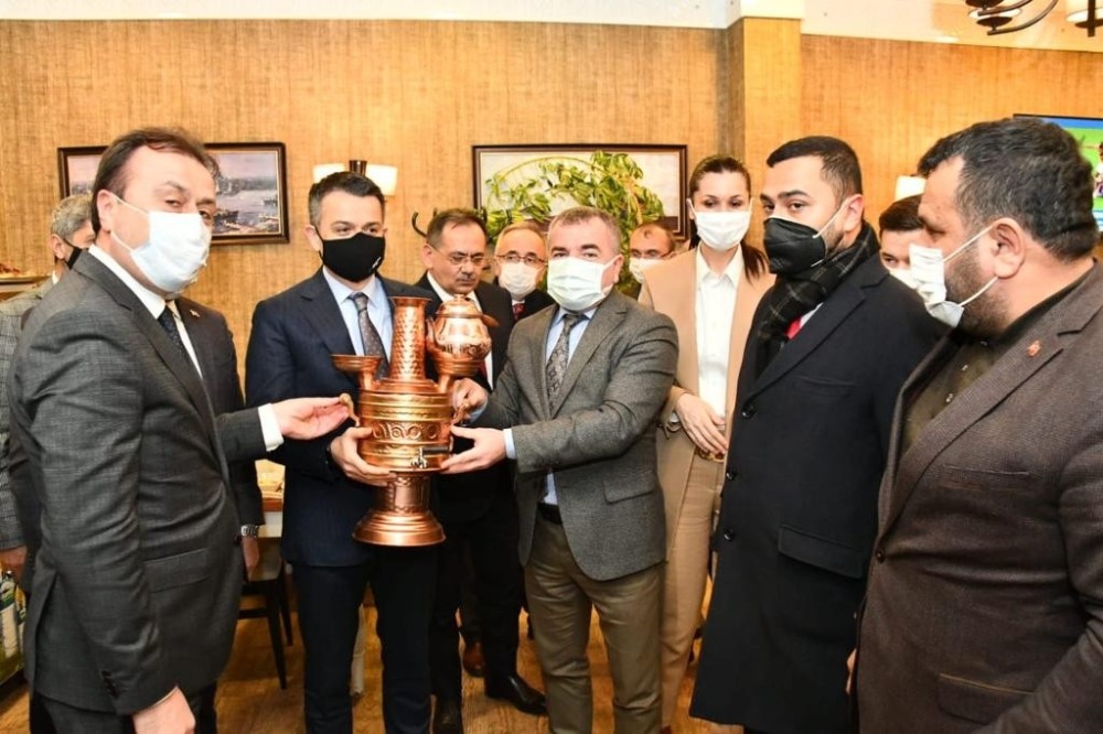 SAMSUN (İHA) – Havza Belediye Başkanı Sebahattin Özdemir, Tarım ve Orman Bakanı Bekir Pakdemirli’ye Havza semaveri hediye etti.