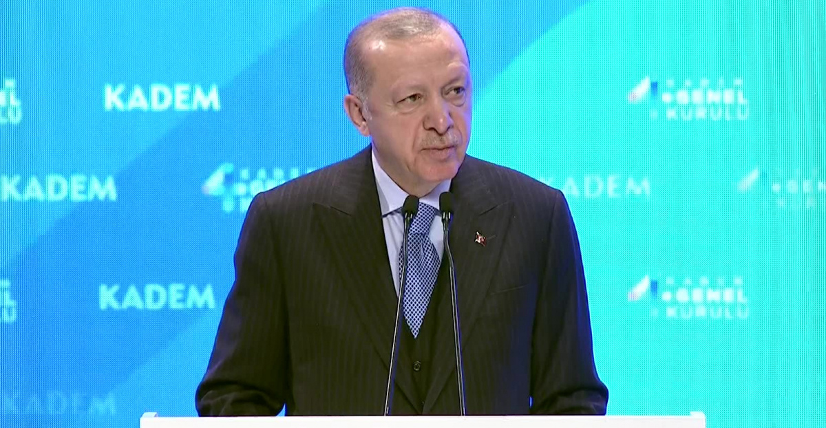 Programda konuşan Cumhurbaşkanı Erdoğan, “Kadının temel hak ve özgürlükleri konusunda yaşanan sıkıntılar tamamen zamanın ve şartların ürünü, toplumsal kabullerin eseridir. Kadını anne, eş, kardeş, evlat vasıflarıyla insanın bir yarısı, erkeği de yine baba, eş, kardeş, evlat vasıflarıyla insanın diğer yarısı görmeden bu meseleyi sağlıklı ve sürdürülebilir dengelere oturtmak hayli zordur. Elbette ilahi takdirden kaynaklanmayan her meselenin çözümü idrakle, gayretle, sabırla mümkündür. Bu anlayışla ülkemizdeki kadınların dünyadaki genel yönelimlerden farklı bir seyir izleyerek bugüne gelen şiddetten eğitim ve iş hayatındaki adaletsizliklere kadar geniş bir yelpazeye yayılan mücadelelerinde daima yanlarında olduk. Derneğimizin öncülüğünde yürütülen faaliyetlerde dünyada kimi yerlerde varlığını gördüğümüz bir sapkınlık dayatması değil, kadın insan, erkek insanoğlu irfanından neşet eden bir erdem ve onur mücadelesidir. KADEM bünyesinde gerçekleştirilen çalışmaların hep demokrasi, adalet, hak, sorumluluk, temsil, şiddet, mağduriyet gibi kavramlar çerçevesinde yoğunlaşmasının sebebi de işte bu yaklaşımdır. Kadınların haklarını savunmak, onları küçümseyerek, metalaştırarak meseleyi sadece birkaç başlığa indirgeyerek değil onların insan sıfatıyla zaten sahip oldukları haklarını teslim etme anlayışıyla yapılır. Bu zaviyeden bakılmayan her meselede kadınların sorunla, sıkıntıyla, ayrımcılıkla, adaletsizlikle karşılaşması kaçınılmazdır. Biz ülkeyi yönetme sorumluluğu üstlendiğimiz günden beri işte bunun mücadelesini verdik, veriyoruz. İnsani, siyasi, sosyal, ekonomik her alanda kadınlarımızın çok önemli mesafeler katetmesini sağladık. Sonuçta kadınların iş gücüne katılımını yüzde 27’ler seviyesinden yüzde 34’ler seviyesine çıkardık. Kadın istihdamını 6 milyondan 10 milyon sınırına getirdik. Kız çocuklarımızın tamamını eğitimle buluşturarak her seviyede onların eğitim öğretimlerini destekleyip kolaylaştırarak artık bu başlığı sorunlarımız arasından neredeyse tamamen çıkardık. Karar mercilerinde kadınlarımızın varlığında gözle görülür bir artış yaşanmasını temin ettik. Mesela kadınların parlamentodaki temsil oranı yüzde 4 iken yüzde 17’lerin üzerine yükseldi. Üniversitelerimizdeki öğretim elemanları arasında kadınların oranı yüzde 51’e yaklaştı. Mimarlardan avukatlara, öğretmenlerden sağlıkçılara kadar pek çok meslek dalında kadın erkek oranı büyük ölçüde dengelenmiş durumdadır. Elbette karar alma mekanizmalarında ve istihdamda kadınların temsili konusunda hala arzuladığımız seviyeye ulaşabilmiş değiliz. Ama kat edilen mesafenin önemini de görmezden gelemeyiz” dedi.
