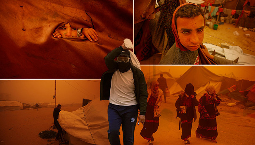 Güvenlik ve barınma koşullarının neredeyse bulunmadığı ortamda kum fırtınasının, zaten zor şartlarda yaşayan yerinden edilmiş ailelerin yükünü daha da ağırlaştırdığı belirtildi.
